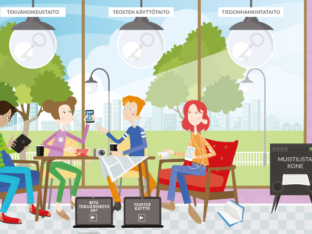 Vid Kopiraittila lär du dig om upphovsrättigheterna genom frågesportsfrågor och spel. Självstudieanvisningen låter dig genomföra helheten helt självständigt, och din kompetens kan bevisas genom kunskapsmärket Upphovsrättskännare.